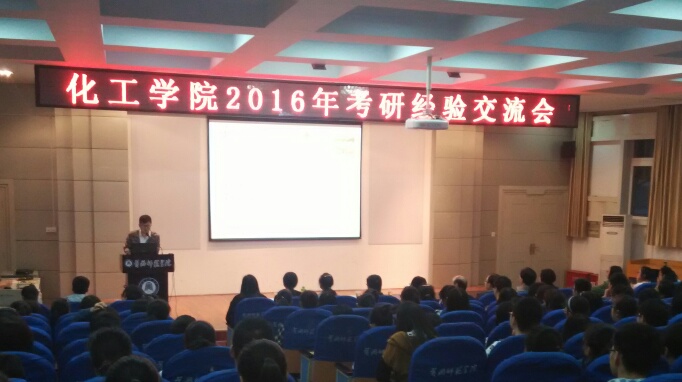 为帮助我化工学子明确考研目标,4月25日晚,我院2016年考研经验交流会在南区学术报告厅顺利召开。化工学院党总支书记夏启中,副院长叶发兵、田正芳出席交流会。