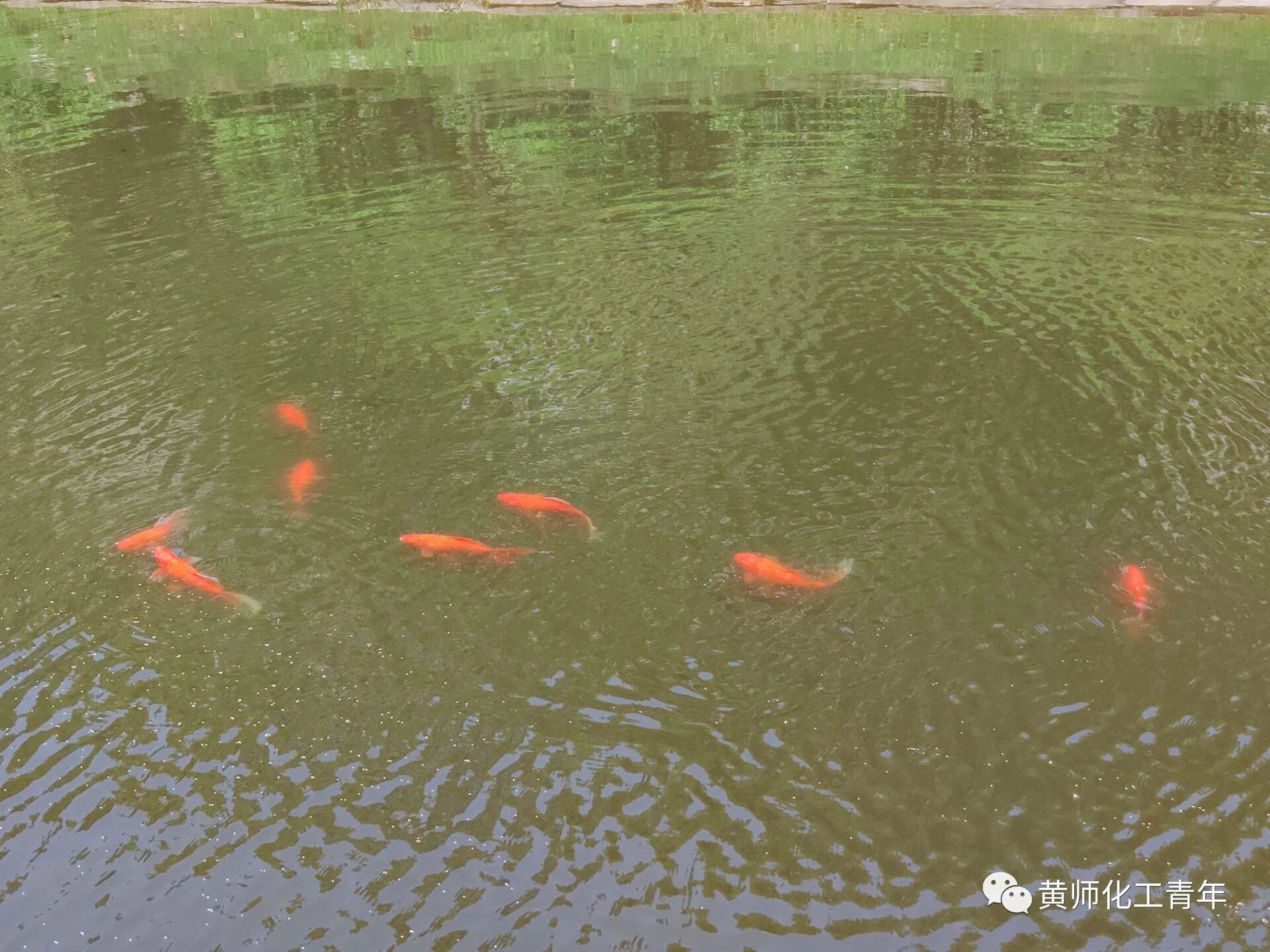 除草活动结束,我们根据除草量领取鱼食,到博学楼前河流给锦鲤喂食。锦鲤纷纷攘攘,争相跳出河流,甚至有一条跳到了人工草丛里。在经过一番努力,我们成功拯救锦鲤,相信它的运气一定会分给我校