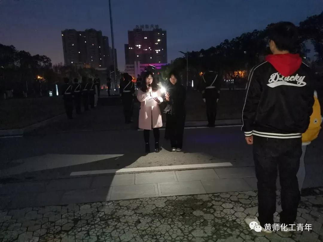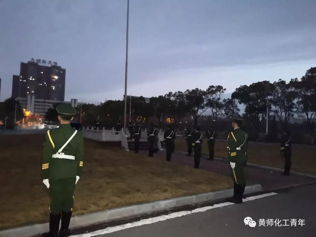 12月23日凌晨六点半,我院在博学楼前参加了庄严的升旗仪式,大一全体学生、学生会全体成员以及分团委书记余杨老师参加升旗仪式。