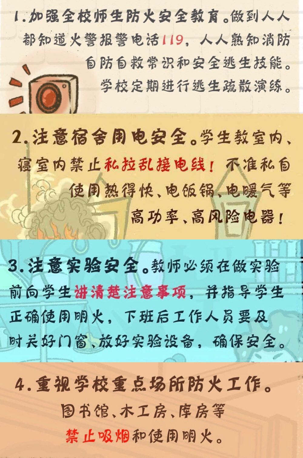 直播内容主要包括还原2019年桂林雁山区造成多名大学生伤亡的“5·5”火灾现场,讲解逃生知识和注意事项;模拟学生在宿舍使用“热得快”烧水、大功率电器做饭等情景,讲解火灾危险性;模拟教师在实验室因操作不当引起燃烧等情景,讲解实验室消防安全注意事项。