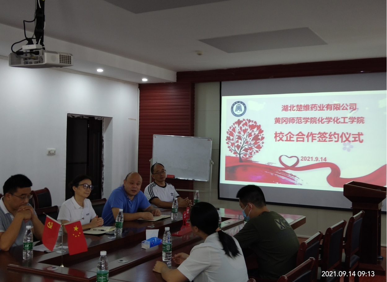 9月14日上午,湖北楚维药业有限公司总经理熊沣一行到化学化工学院洽谈校企合作及共建博士工作站等事宜,并签订校企合作协议。
