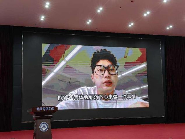 大会第二项议程,往届考研学长寄语。2023届考取研究生就读于贵州大学的许锦铧学长、华中师范大学的黄纪超学长发来祝福视频,讲述了他们的考研之路,分享了研究生生活,对即将踏上征途学弟学妹们送上了真挚的祝福和鼓励。