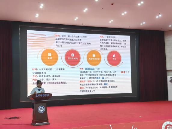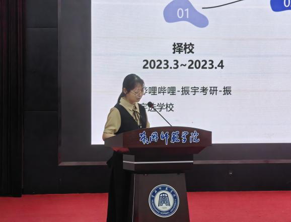 会议第一项,李辛妹、路威、陶茜、杨雪莉、金巧5位考研上岸的优秀学子上台分享了各自成功的考研经验和感悟。她们从考研的心路历程、备考策略、科目复习方法等多个方面进行了深入浅出的讲解。她们以自身情况为依据,结合当前考研形势加入自己的思考,多角度、有重点,各有侧重,鼓励正在备考的学弟学妹们稳住心态。她们的分享让在座的学生受益匪浅,纷纷表示将认真借鉴学长学姐的经验,为自己的考研之路做好充分的准备。