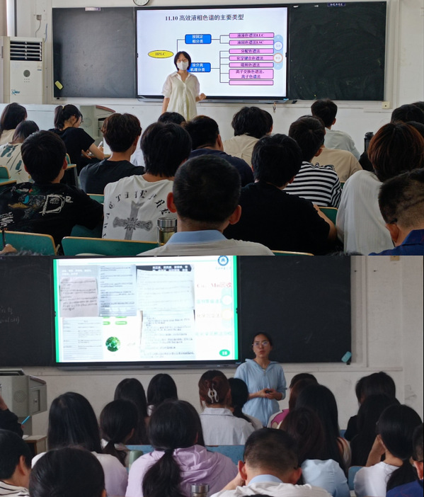 校理科教学督导组一行听取了我院王逸凡博士讲授的《分析化学》和黄晓博士讲授的《无机化学》课程。课堂上,督导组认真听课,详细做好听课记录,仔细观察学生上课状态,并对教学过程、教学方法、教学效果等情况进行全面了解。反馈会上,督导组对两位青年教师的课堂教学给予充分肯定,认为她们教学态度认真、教学设计规范,专业知识扎实,充分利用数字资源进行智慧教学。同时也就两位青年教师的教学理念、教学设计、课堂实施与组织、课程思政融入以及师生互动方面进行耐心指导。另外,从如何活跃课堂气氛激发学生的学习潜力等方面提出了许多宝贵建议