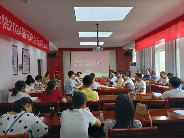 2024年6月13日下午,化学化工学院全体教师和高年级学生代表在化学楼407参加了学院召开的2024年科研诚信与学风建设专题教育大会。