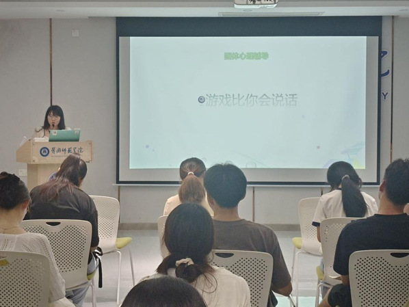 漆晓琴老师从不同的年龄阶段出发,向同学们分别讲述了小学生、初中生和高中生的心理发展特点,并提供了一系列科学有效的指导方法。她指出,作为一名教师,我们要时刻关注学生的心理健康问题,为学生提供及时、科学的帮助,让学生正确认识自我,结合年龄特征和社会环境引导学生树立正确的价值观、人生观、世界观。她强调,中小学生正处于身心发展的重要阶段,随着身体发育、心智成熟、知识经验积累、思维方式和行为方式变化与社会阅历增加,都将会滋生诸多矛盾与烦恼,志愿者身为教师,有责任和义务去帮助他们疏导并调节心理上的变化,给予他们情绪上的慰藉与安抚。培训过程中,漆晓琴老师还引导同学们进行趣味游戏“比你会说话”,调动了所有参与培训同学的积极性。漆老师表示,她希望大家能把所学的有关中小学生心理的理论知识,运用到“筑梦”暑期实践活动中,切实关注中小学生的心理健康,为乡村儿童送上一份温暖,献上一份爱心。最后,她预祝本次实践活动顺利开展!