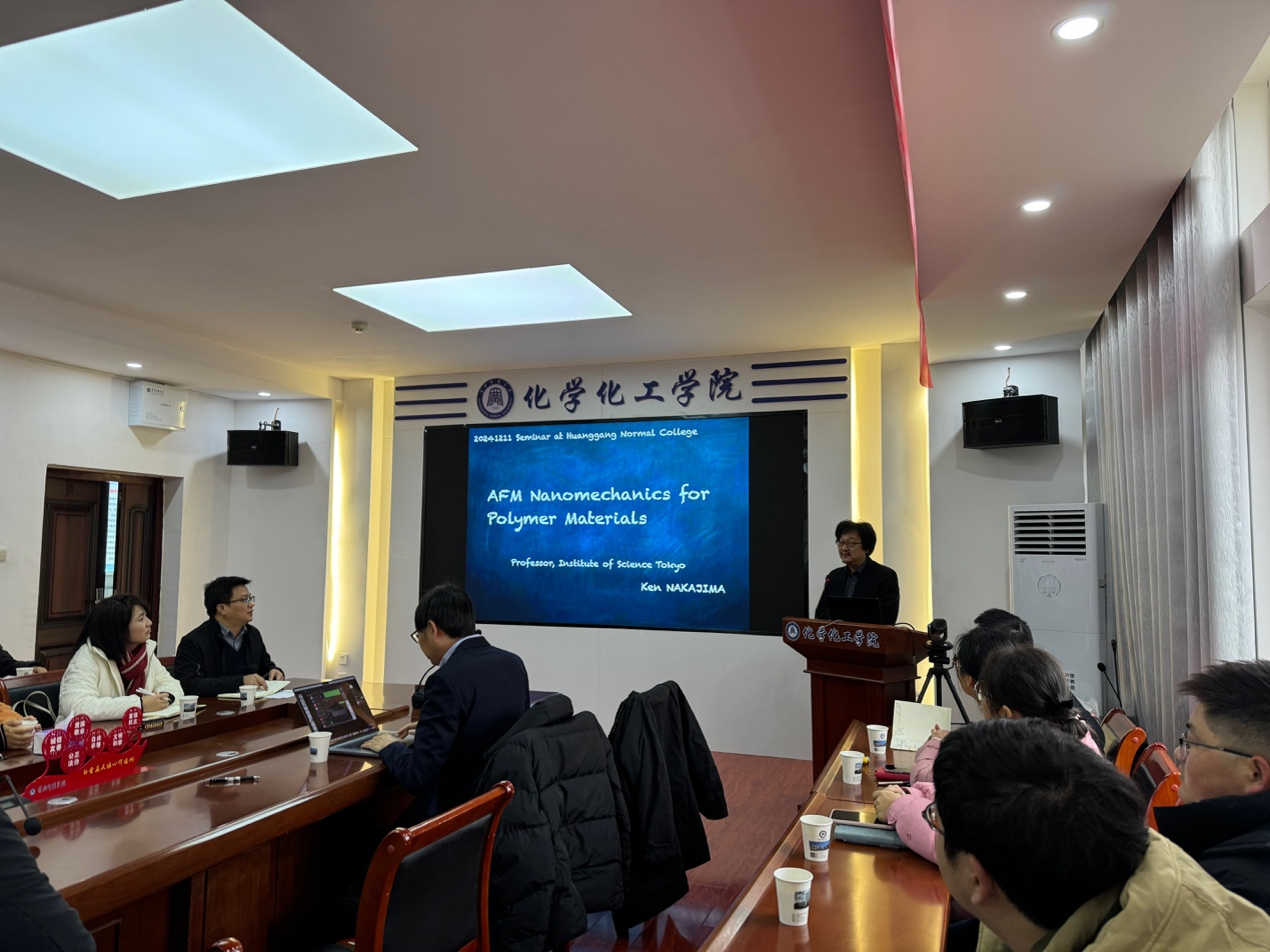 2024年12月11日,应我校邀请,日本东京工业大学中嶋健教授莅临我校,为化学化工学院师生们带来题为“AFM Nanomechanics for polymer physics”的学术报告。该活动由湖北省教育厅“世界著名科学家来鄂讲学计划”项目资助。校党委书记陈向军会见了中嶋健教授。