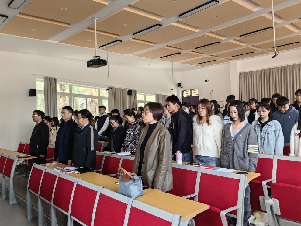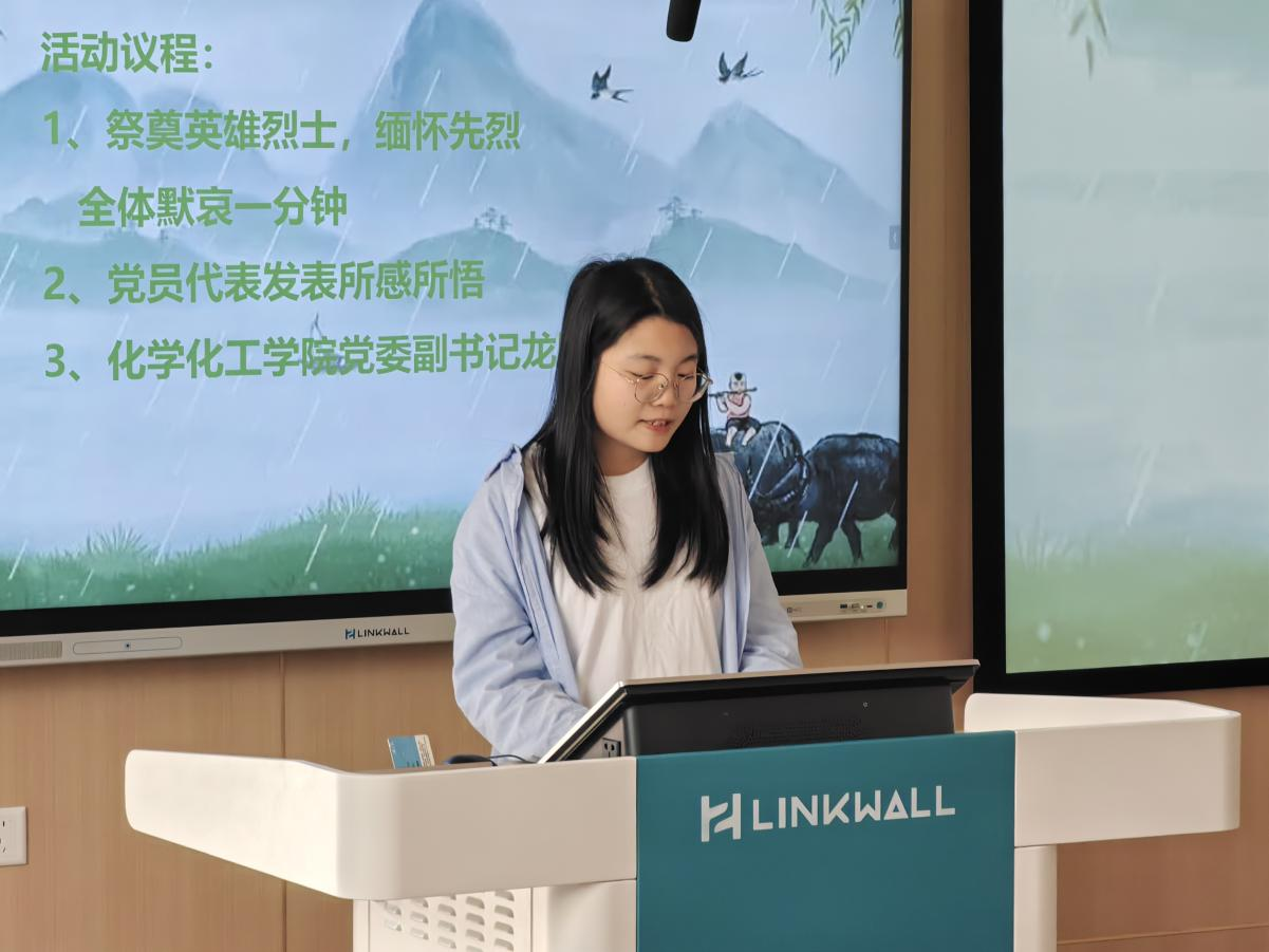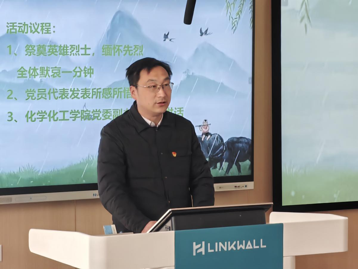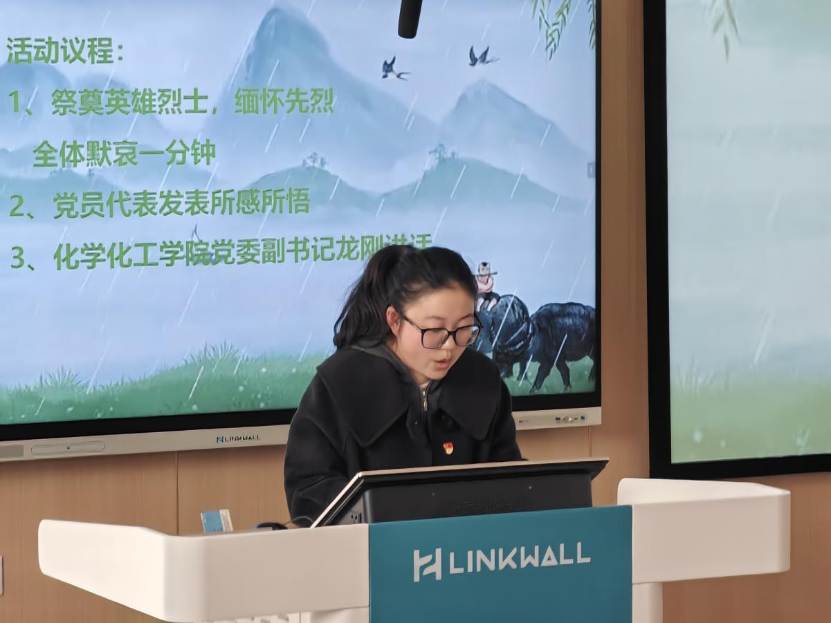 四月的校园,松柏凝翠,又一年清明悄然而至。为加强学生党员理想信念教育和爱国主义教育,铭记革命先烈的英勇事迹。4月1日中午,化学化工学院在博学楼B01教室举行清明节祭英烈活动。院党委副书记龙刚、全体辅导员老师以及全体学生党员参加活动。本次活动由学生党员王羽琪主持。