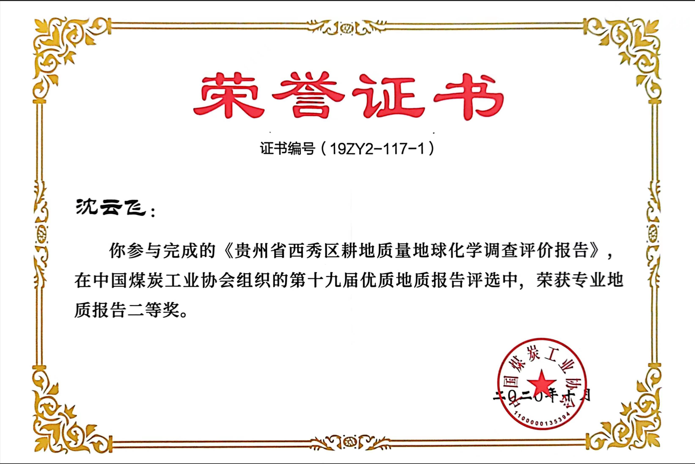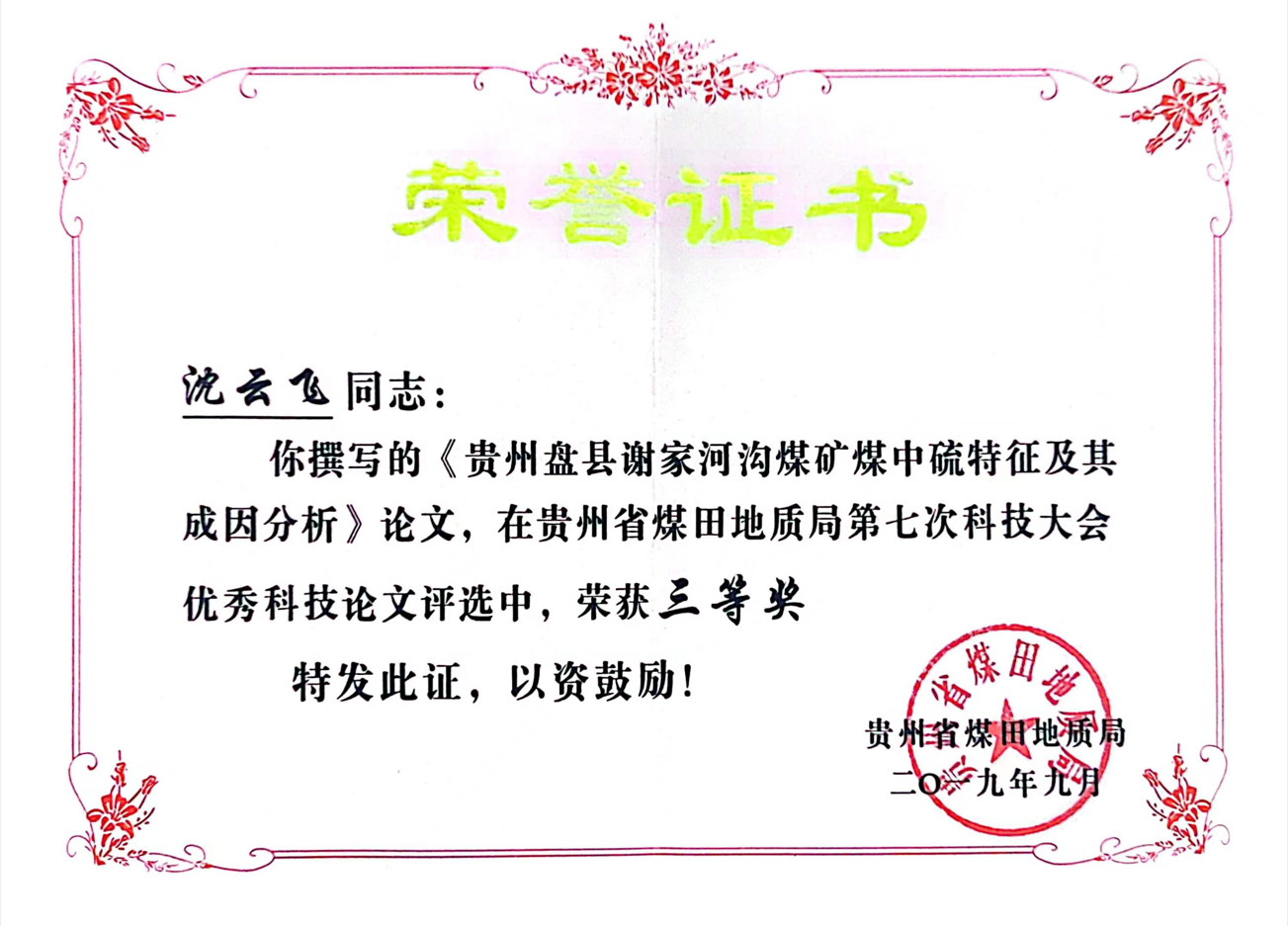 “学习是克服本领恐慌的最好良药。”沈云飞常把这句话挂在嘴边。工作之余,她考取注册监理工程师、矿业权评估师资格。近年来,她以第一作者发表学术论文5篇,第二作者发表学术论文3篇,编写的《贵州盘县谢家河沟煤矿煤中硫特征及其成因分析》荣获贵州省煤田地质局第七次科技大会优秀论文三等奖。此外业余时间积极主动学习地质灾害防治、土壤环境调查、山水林田湖草生态修复等内容,积极提高自我能力。她以自己的一言一行给全队干部职工树立了榜样,给身边的人传递着正能量。