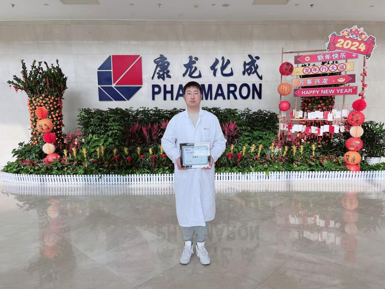 2022年,博士毕业的牛鹏飞怀揣着“学以致用”的理想,加入康龙化成宁波科技发展有限公司,担任高级有机合成研究员,负责催化剂高通筛选及光/电化学技术在医药中间体合成中的应用研究。职场新征程上,挑战接踵而至,但他始终以黄师校训为指引,秉持奋发图强的精神,不断突破自我。