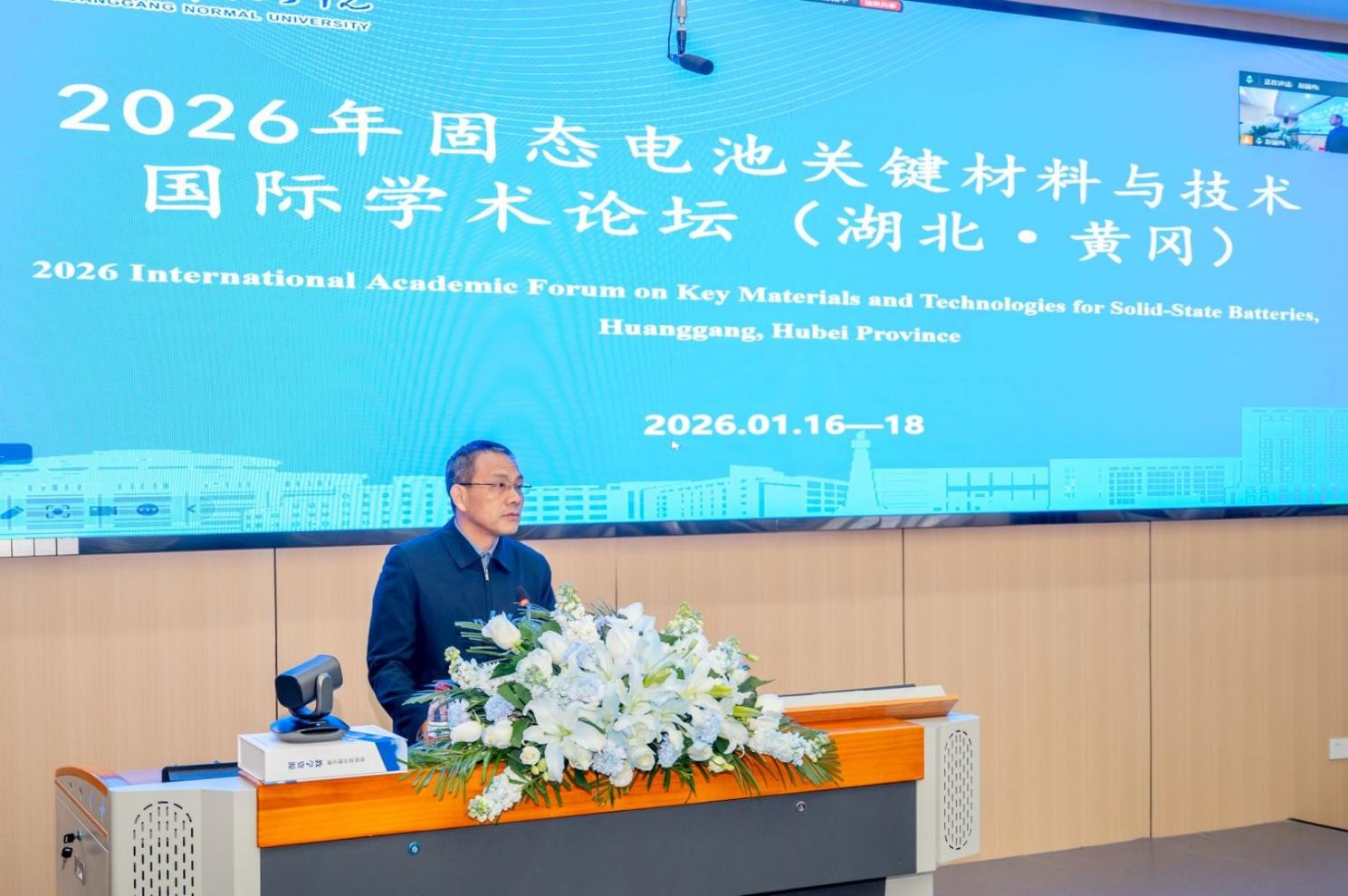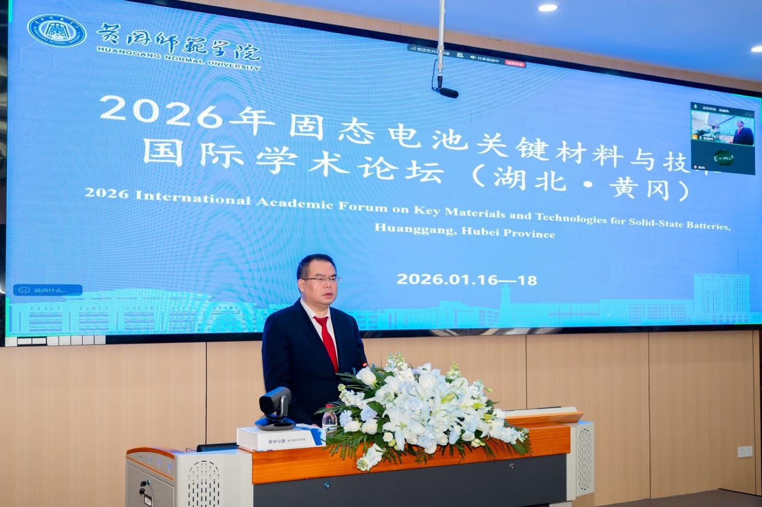 经湖北省人民政府外事办公室批复,1月16日至18日,由英国365集团官网主办的“2026年固态电池关键材料与技术国际学术论坛”在我校成功召开。校党委副书记、校长漆昌柱,黄冈市科协党组书记、主席彭学海出席开幕式并致辞,会议由化学化工学院院长田正芳主持。