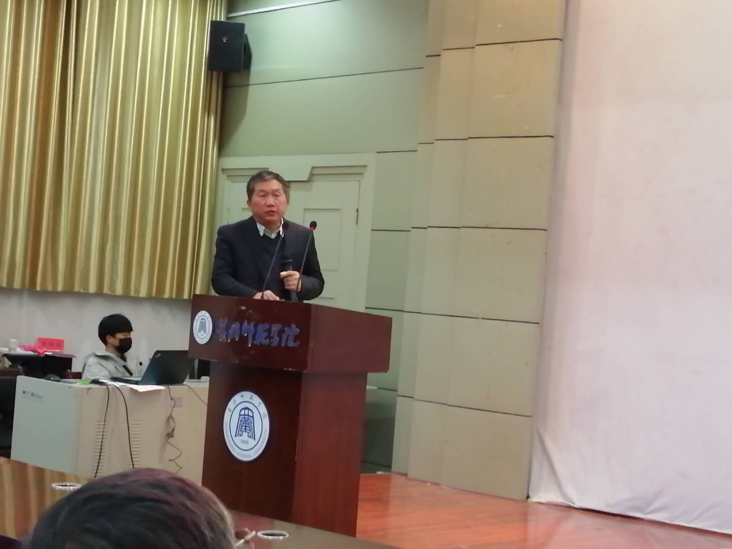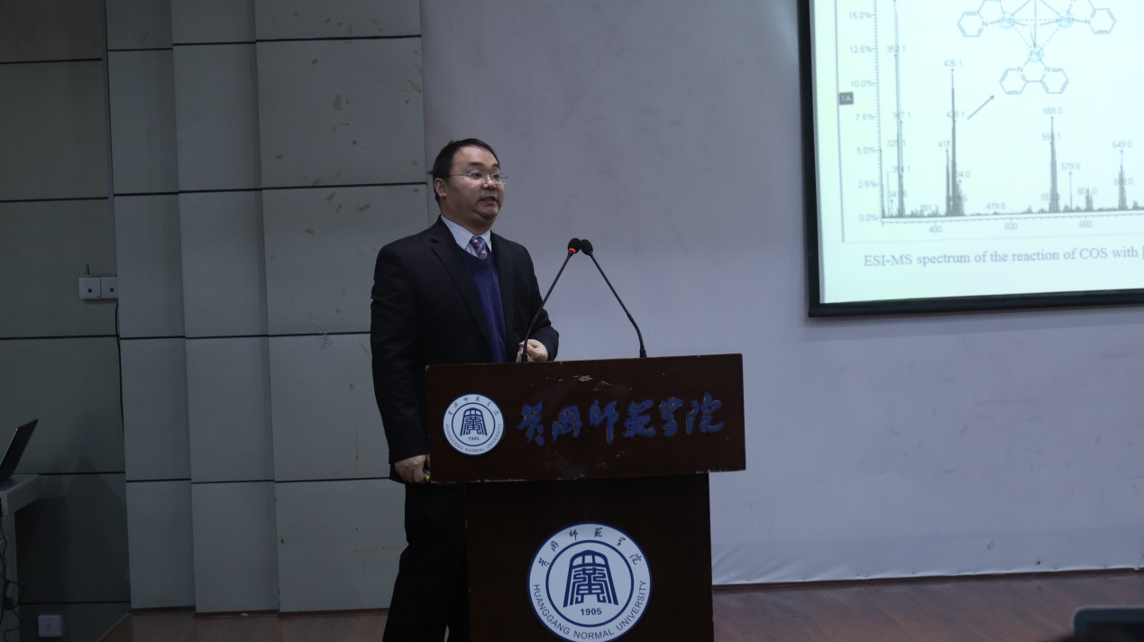 4:00,由徐志花教授主持的下半段报告正式开始,冒着风雪赶来的武汉大学董秀琴副教授、湖北大学王升富教授为在座的师生做了题为《基于非共价键活化策略发展新型手性双膦配体及其在不对称氢化反应中的应用》、《核酸适体传感器用于生物标志物检测研究》的学术报告。