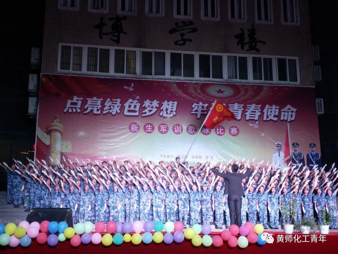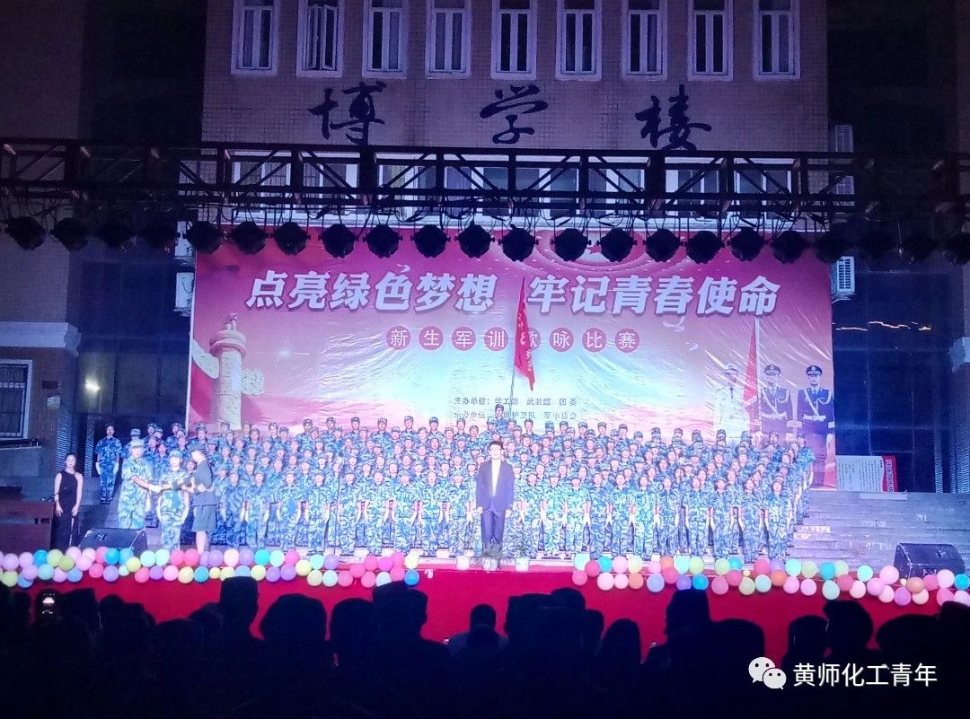 2018年9月24日晚七点,一轮明亮的圆月镶嵌在这美丽的中秋之夜中,大一新生的军歌赛在我校南区博学楼隆重举行!每个院轮流进行表演,精彩的演出,如潮的掌声,彻响在校园内外每一个角落!化学化工学院也积极的参与其中。