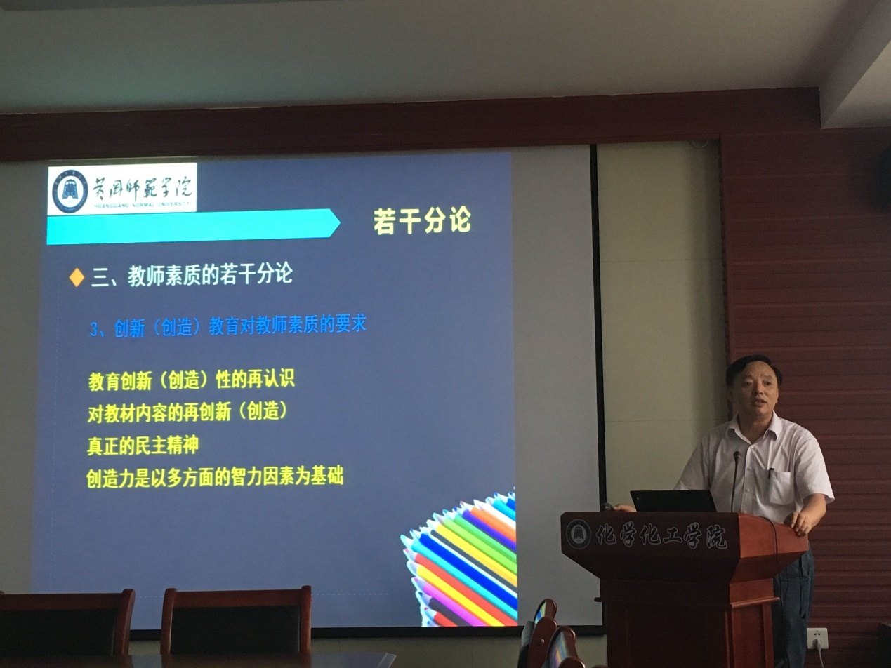 为提高我院青年教师教学研究水平,提高教师业务素质,6月17日,化学化工学院邀请陈年友教授来我院讲学。陈年友教授的报告题目为《论高校教师素质与教学研究》,报告内容包括:提高教师素质的重要性、教师素质及时代特征、高校教师如何进行教学研究等。陈年友教授的报告结合自身多年教学以及教学研究经验,并针对我院实际情况进行专题讲座,报告内容丰富精彩、现场气氛热烈,广大教师受益匪浅。