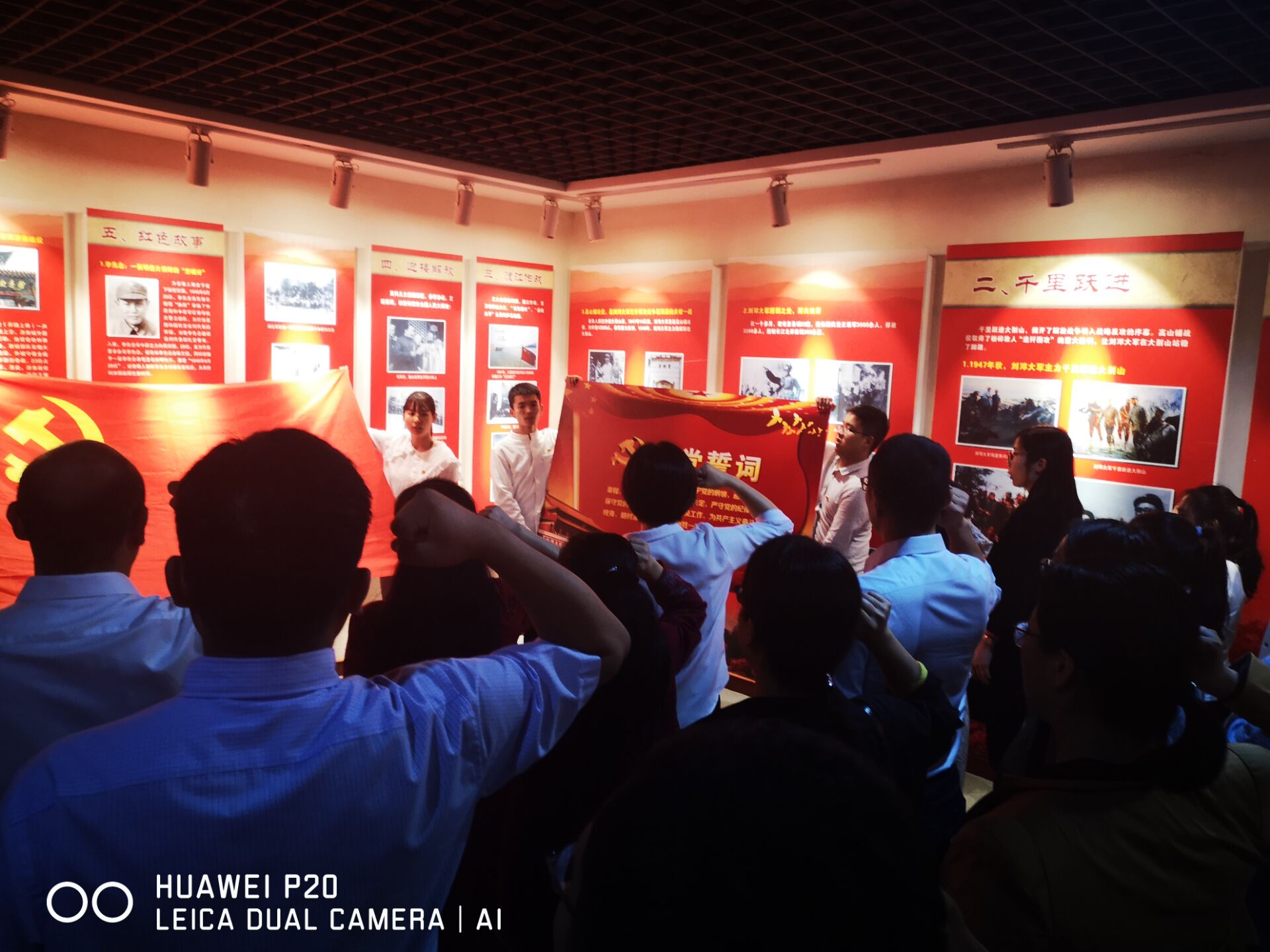 参观结束后,在红馆中,全体党员面向党旗,重温入党誓词。坚定“不忘初心、牢记使命”的政治信念。参观结束后,全体党员集中观看《本色》专题片和张富清同志先进个人事迹,集中学习“不忘初心、牢记使命”相关重要学习内容。
