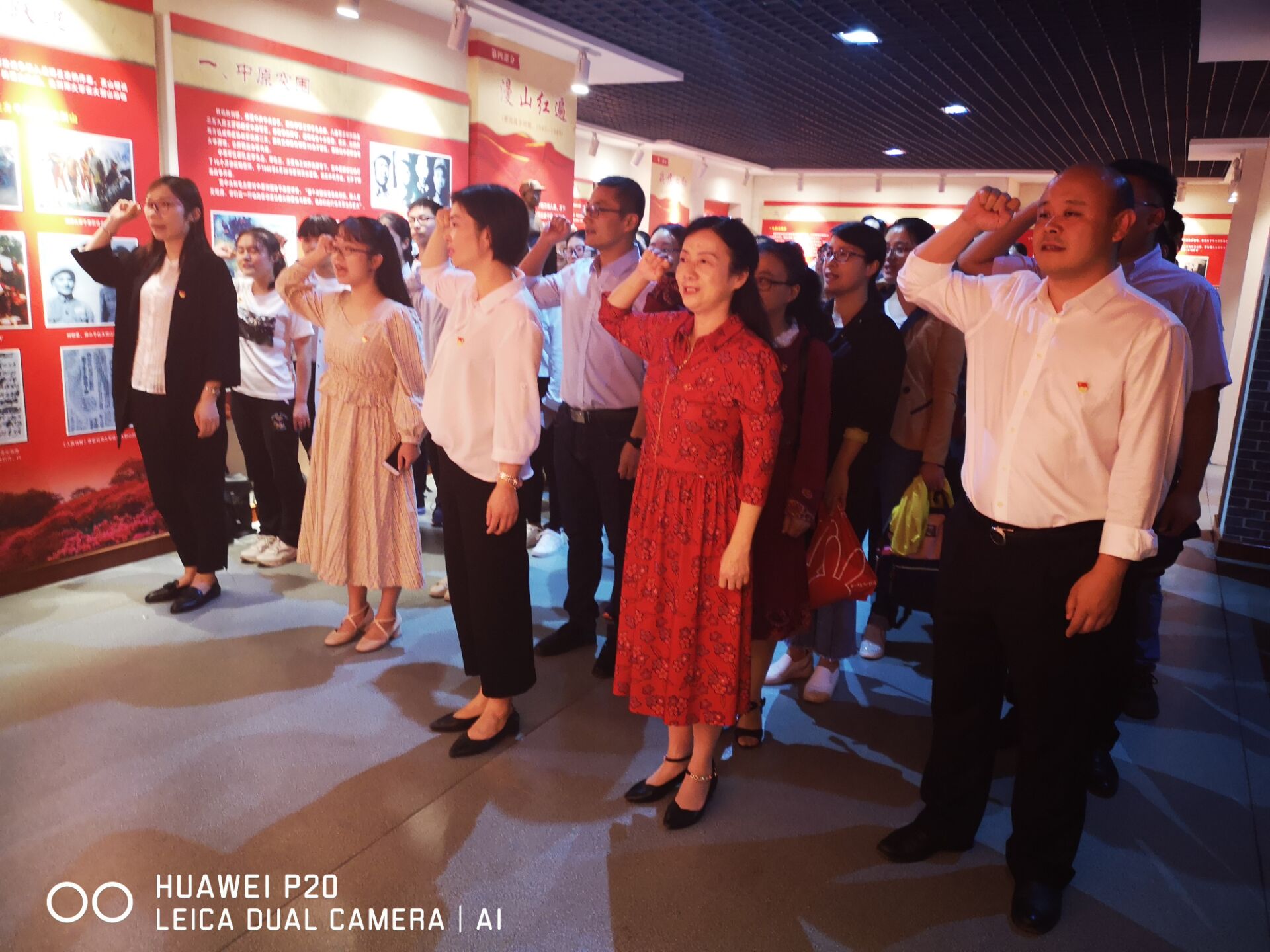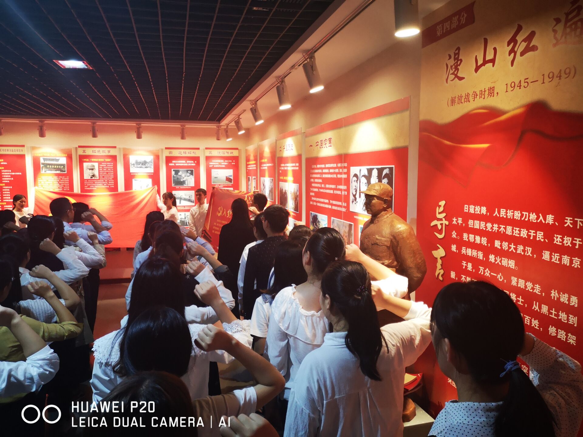 追寻先辈足迹,回顾革命历史。在讲解员的引导和讲解下,全体党员仔细参阅了“红色火种”、“红星闪亮”、“战旗血红”、“漫山红遍”、“红星璀璨”五个板块内容,从中国共产党早期建党活动的重要驻地,到鄂豫皖革命根据地的中心,从黄麻起义的革命烽火,到刘邓大军千里跃进大别山,黄冈因中国革命而红遍天下。再次让党员们深刻感悟了革命先辈“为缔造中华人民共和国,44万黄冈儿女赴汤蹈火、英勇献身,一次次将红土地的赤诚浸透,一回回将大别山的风骨挺起”的爱国情怀。