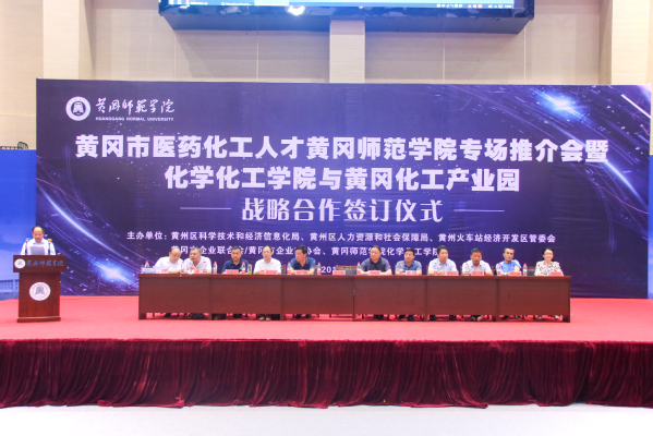 会上,我校与黄冈化工产业园签订了战略合作协议。我校和火车站医药化工园区的全方位合作正式开始,它既是政校企合作模式的新尝试,也是我校精细化服务地方产业的开始。将有效地实现教育科技资源和产业资源的全面、有序对接,进一步推动我市医药化工企业高质量发展。