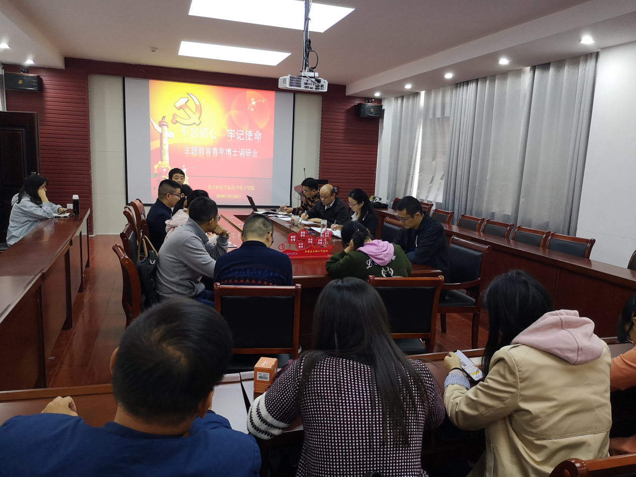10月25日上午,学院班子成员围绕实验室及坐班人员情况及存在问题率先开展主题教育调研。10月25日下午,学院班子成员围绕青年博士、学生党员、入党积极分子、贫困生在工作和学习中存在的困难进行了全面的调研。领导班子认真听取了实验室人员、坐班人员和全院青年博士对学院建设、学科建设、实验室管理和人才引进等方面的意见建议。施书记表示,接下来将根据大家提出的意见建议,认真进行问题检视反思,共同研究解决方案、提出改进办法及措施,不断创新和完善我院工作思路和举措,切实将调研及此次主题教育的成果体现到推动学院建设发展的过程中。