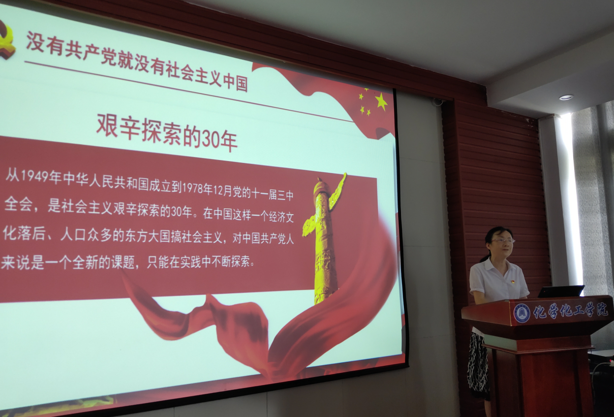 617日下午2:30,党总支书记施向荣在化学楼会议室为化学化工学院全体教师讲授题为《学党史 颂党恩 跟党走的专题讲座。化学化工学院全体教师参加会议。