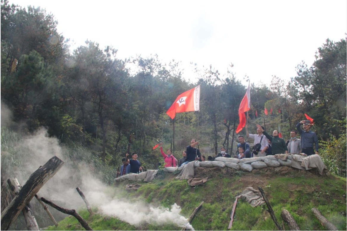 深秋的英山,层林尽染,缓缓流动的白莲河,仿佛诉说着革命历史变迁。上午10点,化学化工学院教师党员到达英山大别山红色文化培训中心,在主讲人的安排下分成两队并领取相关装备,随后在主讲人的带领下进入长征精神体验园,重走一段长征路,用心体验革命精神,用行动传承红色文化基因。活动中党员们了解了大别山革命根据地的创建,重走了红二十五军艰辛的长征路,体验革命先烈不怕艰难险阻,勇往直前的革命理想和信念;参加牛背脊骨战斗、袁家沟口歼灭战等红军战斗,体会为了救国救民,不惜付出生命的牺牲精神;在红军之家唱红军歌,吃红军饭,忆苦思甜,感受今天美好生活的来之不易;在大别山革命历史文化陈列馆广场重温一次入党誓词,牢记初心使命,继续奋斗前进;在陈列馆听党课,学党史,悟初心,体会革命先辈奋斗历程的艰辛。通过近4小时的徒步行军体验,全体党员真切地体会到了大别山革命精神和长征精神之伟大,纷纷表示要坚守初心,在新的长征路上继续奋勇前进。