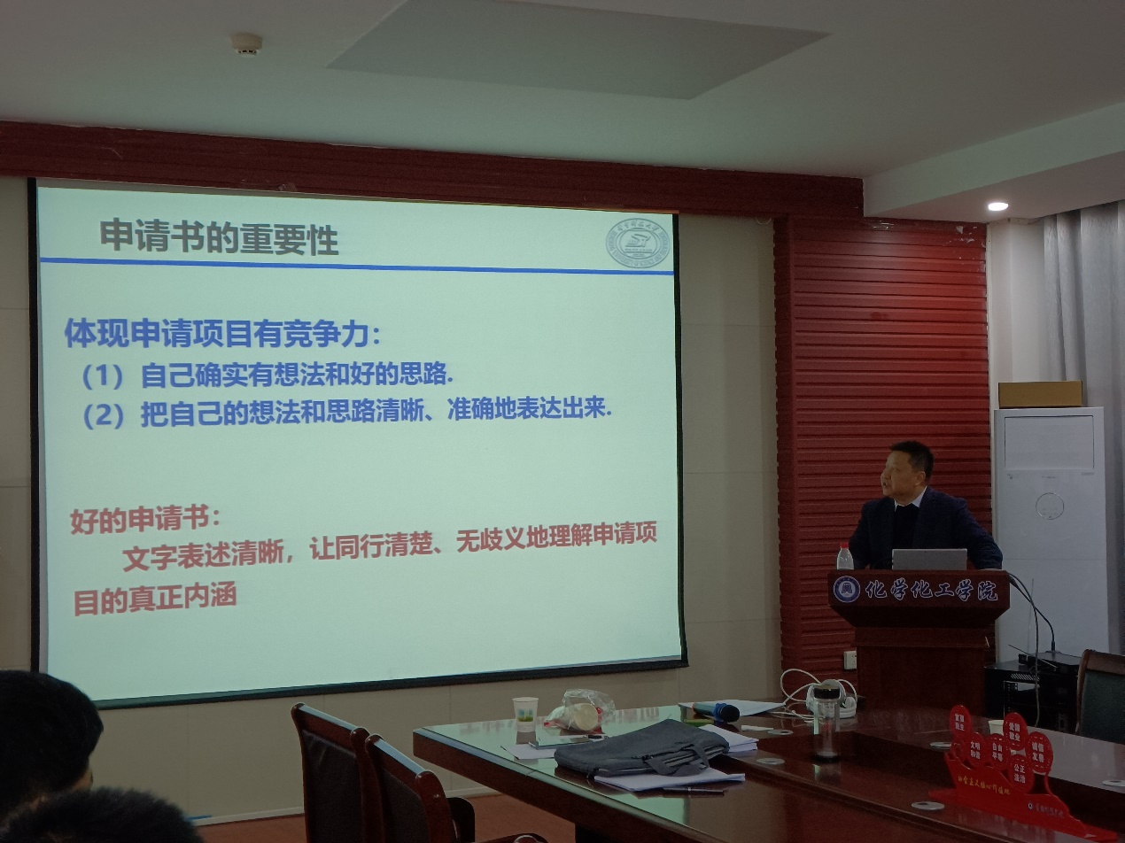 12月7日,华中科技大学谭必恩教授应我院邀请在化学楼407会议室做了题为“国家自科基金选题及申报注意事项”的学术报告,报告会由化学化工学院院长田正芳主持,化学化工学院全体教师参加了报告会。