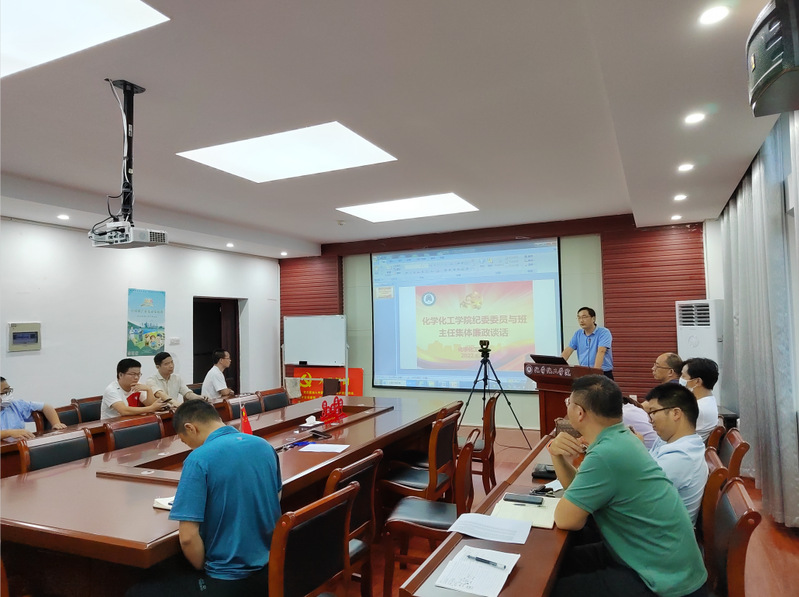 2022年6月7日,化学化工学院在化工楼407召开班主任会议,院纪委委员龙刚与全体班主任进行集体廉政谈话。