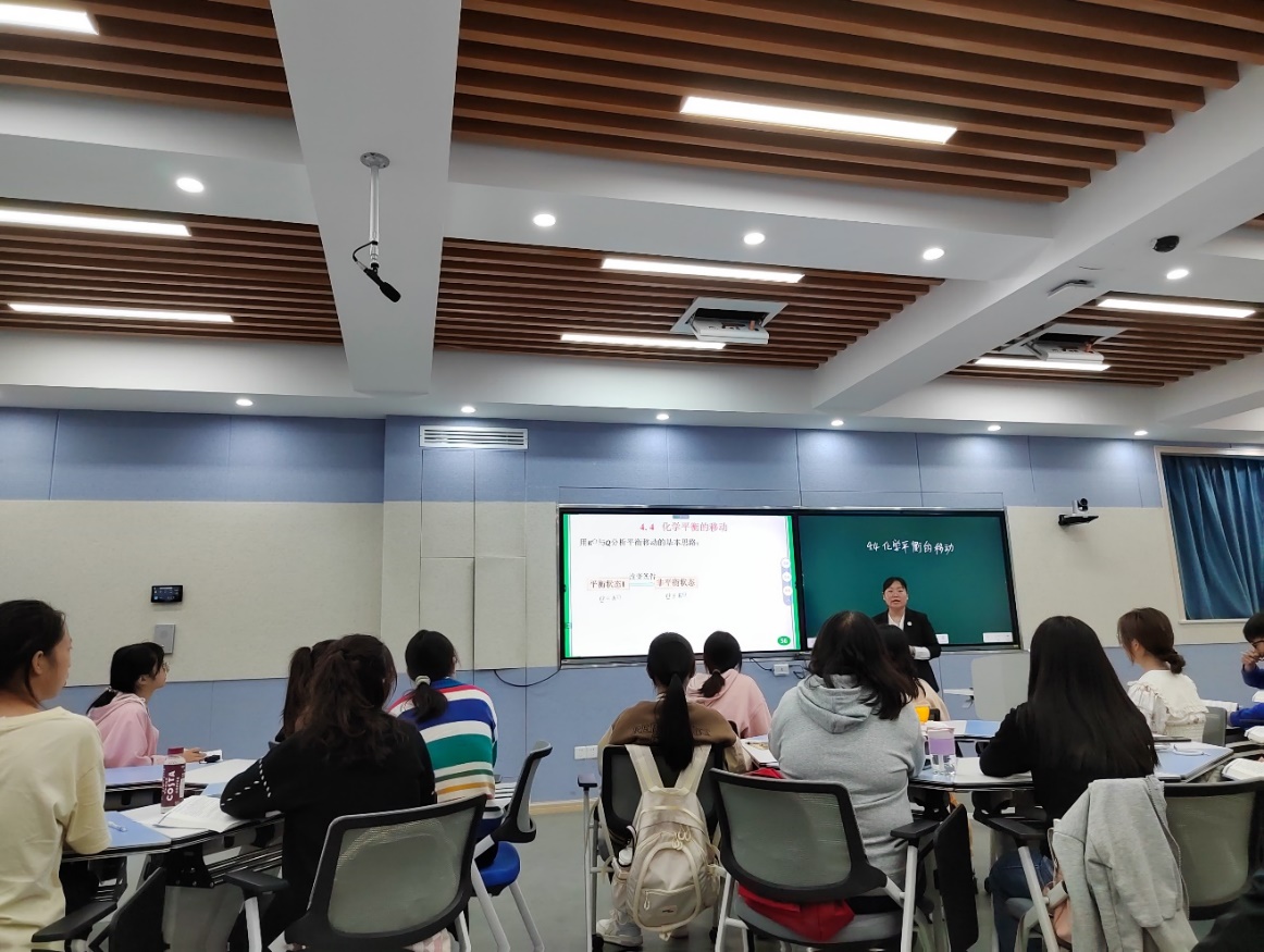 课堂是教育教学的第一阵地,教师的课堂教学能力和水平关乎着学院人才培养的质量和水平。为积极推进我院课堂教学改革,提升教师教学能力,提高教学、教育质量,11月2日下午,在求实楼智慧教室410室开展副教授示范课活动,我院陈砚美副教授就《无机化学》中的“化学平衡的移动”进行了精彩讲解。