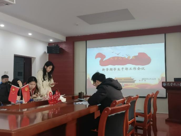 2023221日,化学化工学化工楼407会议室召开新学期第一次学生干部会,党委副书记龙刚学生会全体干部参加本次会议。会议由院学生会主席郑雨涵主持。