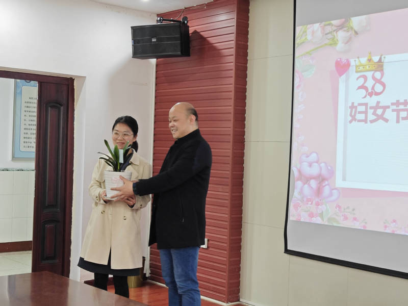 最后,学院领导依次为女教师们送上一份节日礼物一一绿植君子兰,祝福全体女教师们节日快乐!青春永驻!万事如意!
