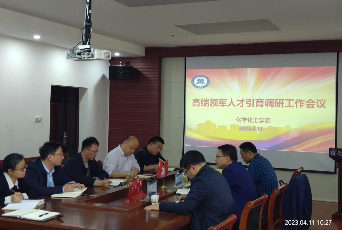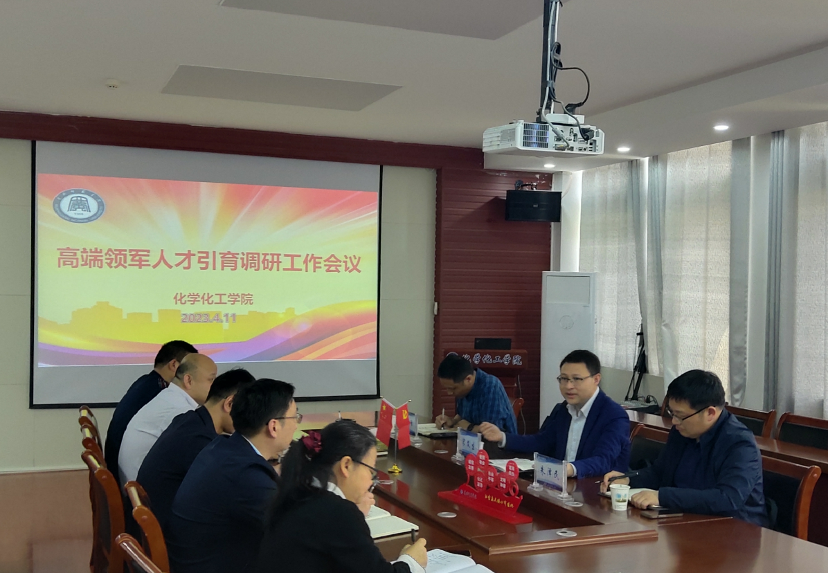 4月11日上午,校党委常委、副校长宋文生同志到化学化工学院调研高端人才引育工作。化学化工学院全体领导班子成员参加会议。