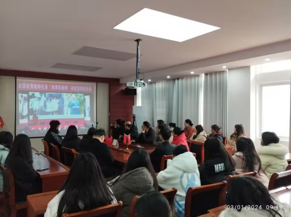3月1日上午,化学化工学院组织全体教职工和师范生集中观看了教育部教师工作司联合中国教育电视台主办,湖北省教育厅、湖北经济学院承办的“2024年全国优秀教师代表‘教育家精神’荆楚宣讲报告会”。教职工在化学楼407会议室集中观看,师范生在博学楼集中观看。