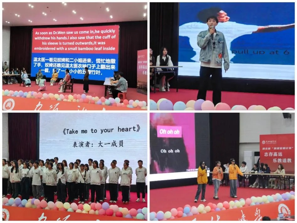 随着“词汇王”争霸赛的比拼步入尾声,竞赛迎来最精彩的环节——风采才艺秀。歌曲《APT》和《勇气大爆发》让同学们感到轻松愉快,看到青春的影子;配音《花木兰》《小王子》惟妙惟肖,现场惊叹一片;由化学2302班代表队带来的《甄嬛传》,又一次将现场气氛推向高潮。节目演绎精彩非凡,令观众大饱眼福、应接不暇,真是一场绝妙丰富的视听盛宴。