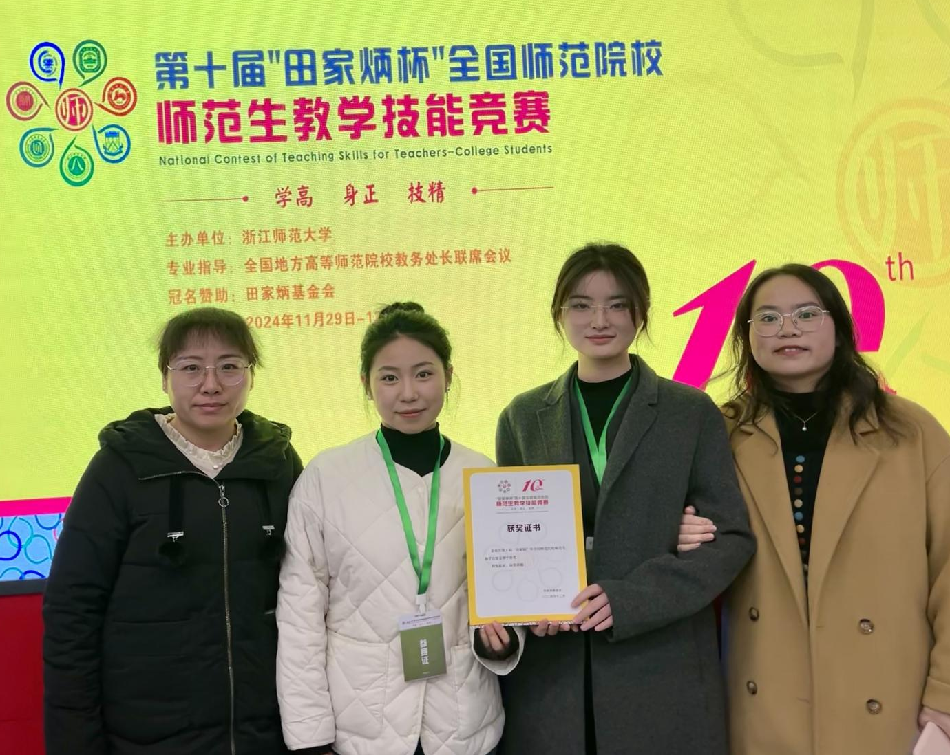 2024年12月1日,第十届“田家炳杯”全国师范院校师范生教学技能竞赛决赛在浙江师范大学金华校区隆重落下帷幕。我院获得全国一等奖1项,二等奖1项,创下我院在该项赛事中的历史最好成绩。