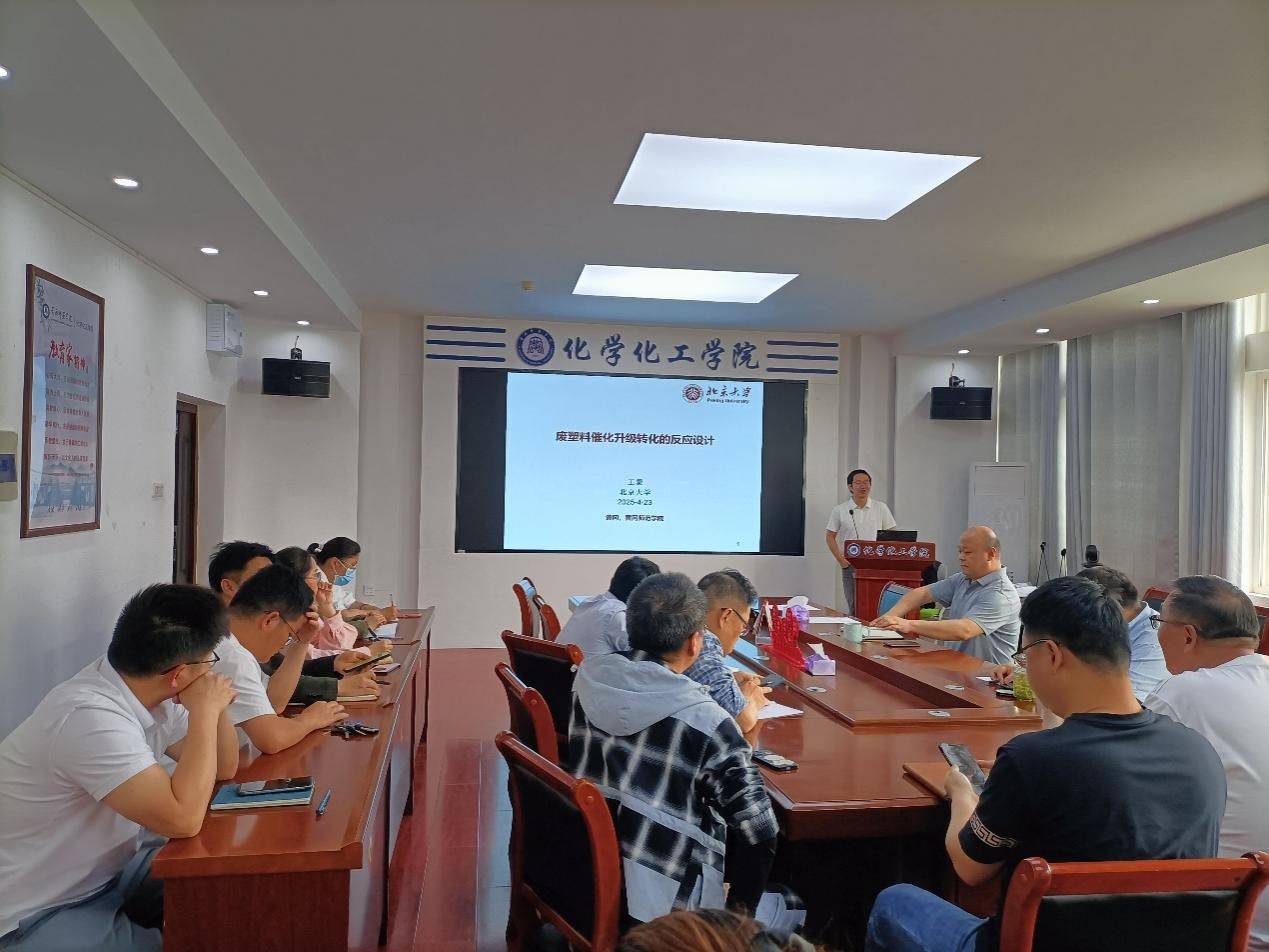 4月23日下午,北京大学王蒙副研究员应邀来到我校,作了一场题为“废塑料催化升级转化的反应设计”的学术报告,化学化工院院长田正芳出席并主持报告会。