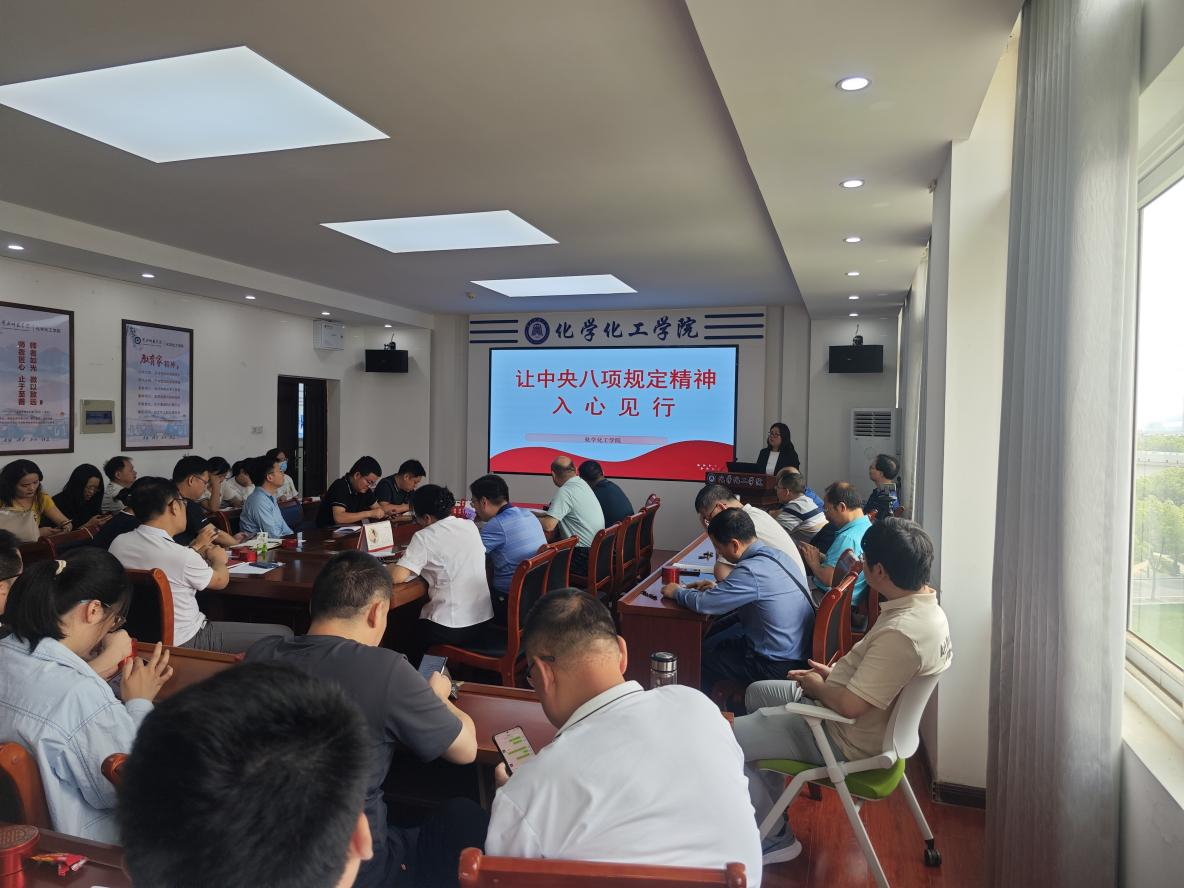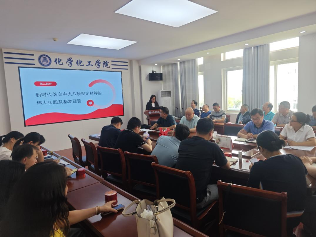 为深入学习领会习近平总书记关于加强党的作风建设的重要论述和中央八项规定精神,持续推动全面从严治党向纵深发展,5月25日,化学化工学院党委书记汪辉以“让中央八项规定精神入心见行”为主题,为全体教职工讲授专题党课。