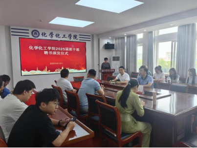 2025 年 6 月 4日上午,化学化工学院在化学楼 407 举办2025 届毕业生班干部聘书发放仪式。院党委副书记龙刚、辅导员李东以及各毕业班班主任出席了本次活动,毕业班各班班委参加此次活动。