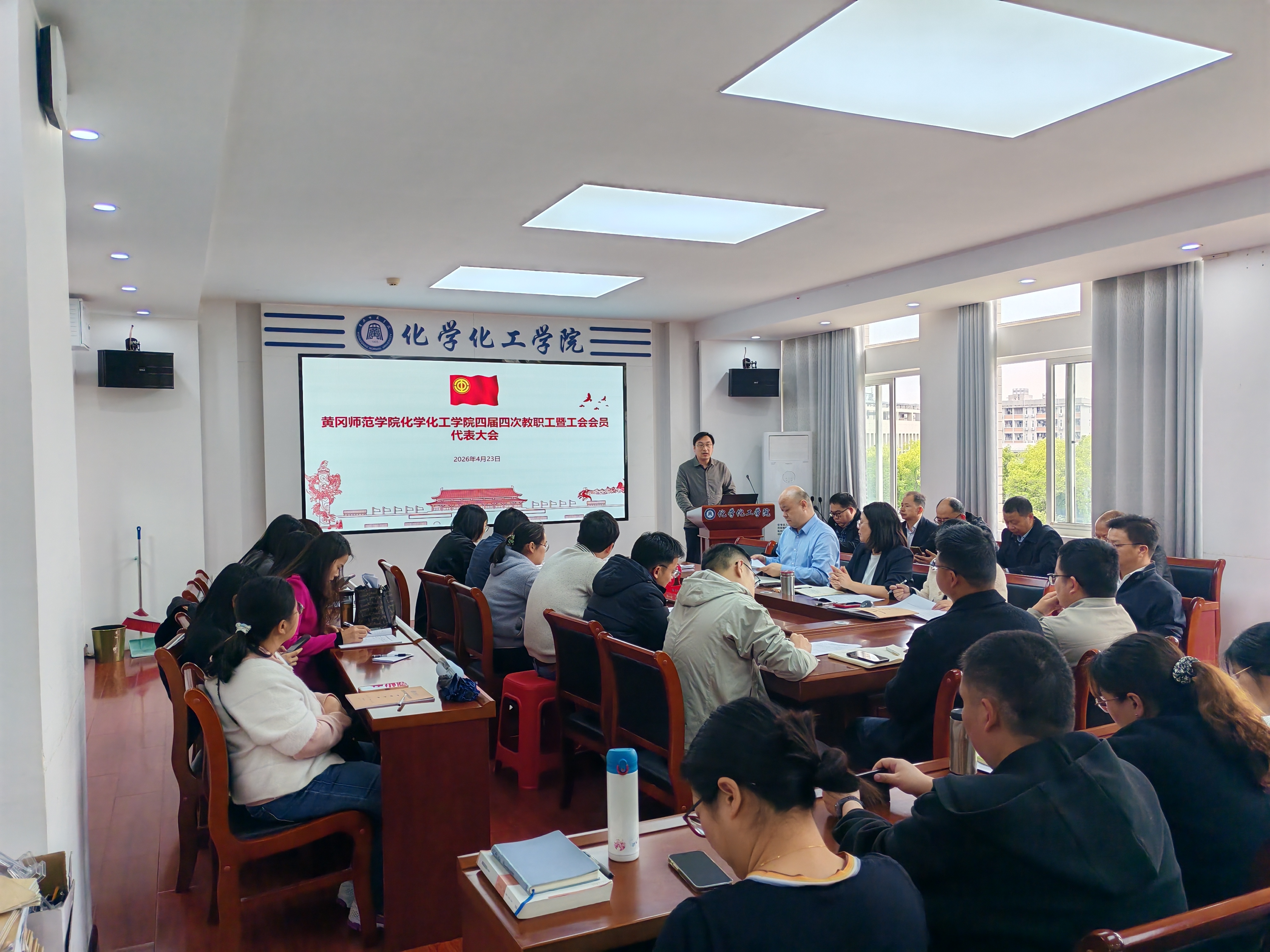 4月23日,化学化工学院召开四届四次教职工暨工会会员代表大会,深入学习贯彻校四届四次教代会精神,谋划学院高质量发展新篇章。学院领导班子及全体教职工参会,院党委副书记、工会主席龙刚主持会议。
